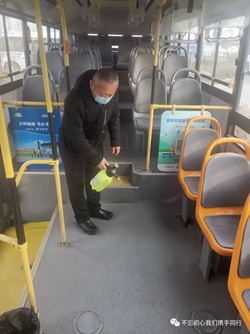 3月22日一大早,伴隨著“轟轟”的發(fā)動機聲,118路司機竇玉海將韓城李莊子車場內(nèi)停駛的30部公交車一一“喚醒”。“車輛長期停駛,電瓶容易虧電,會導(dǎo)致車輛打不著火,所以隔幾天就要啟動一次。”啟動完車輛后,竇玉海又馬不停蹄地對車輛技術(shù)狀況、車載安全設(shè)施正常使用情況進行了認認真真的逐車檢查。一通忙碌下來將近三個小時,此時他又踱步在場區(qū)的角角落落開始了消殺工作。