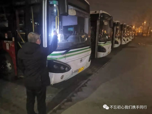 3月22日一大早,伴隨著“轟轟”的發(fā)動機聲,118路司機竇玉海將韓城李莊子車場內(nèi)停駛的30部公交車一一“喚醒”。“車輛長期停駛,電瓶容易虧電,會導(dǎo)致車輛打不著火,所以隔幾天就要啟動一次。”啟動完車輛后,竇玉海又馬不停蹄地對車輛技術(shù)狀況、車載安全設(shè)施正常使用情況進行了認認真真的逐車檢查。一通忙碌下來將近三個小時,此時他又踱步在場區(qū)的角角落落開始了消殺工作。